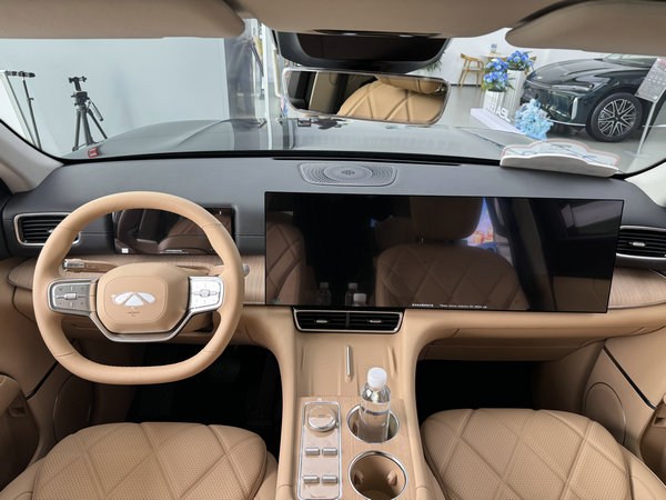 内饰方面,风云T11前后排均配备娱乐大屏,前排为30英寸一体式联屏,后排为17.3英寸的超大屏,全车配备23扬声器,支持AI大模型语音助手,共推出碧玺黑、琥珀棕以及羊脂米三种配色方案。