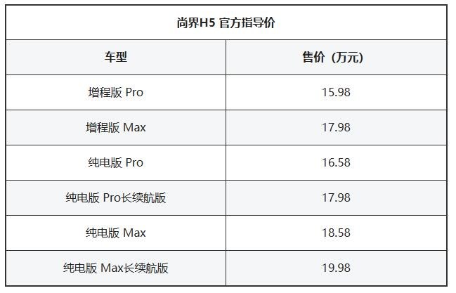 9月23日,鸿蒙智行官方宣布尚界H5 迎来正式上市。2025款尚界H5共推出6款配置,动力方面提供纯电动和增程式两种选择,售价区间为15.98-19.98万元。新车全系均搭载鸿蒙智能座舱,另外高配版车型还带有激光雷达以及华为乾崑智驾ADS 4。9月23日至2025年11月3日,预订用户可享受至高价值43788元首销权益。