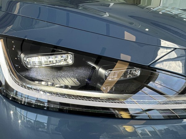 外观方面,尚界H5的前脸采用了极简主义理念,整体线条简洁流畅,充分迎合了当下年轻消费群体的审美。前备厢盖表面的筋线十分流畅,灵感源自船只划破水面时的开尔文尾迹,曲线自然而富有张力,营造出乘风破浪般的动态气势。侧面造型简约利落,线条舒展流畅。车尾造型与前脸相呼应,颇为简洁,尾灯组为平行双灯带设计,勾勒出很强的视觉层次感。同时新车还搭载发光车标与智驾蓝灯,整体外观科技感十足。