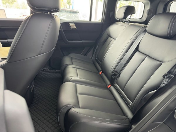 内饰方面,新车中控台采用平直线条设计,配备内嵌式全液晶仪表和15.6英寸2.5K中控屏,内置高通骁龙8155芯片,并配有哨兵模式。中控台上未设置任何物理按键,仅在中控台下方的把手增加了越野氛围。此外,新车还配备平底式多功能方向盘、怀挡式换挡机构和手机无线充电面板,整体设计简洁大气且科技感十足。辅助驾驶方面,新车搭载猎鹰500智驾辅助驾驶系统,可实现高速领航、城市记忆领航等多项功能。座椅布局方面,新车采用2+3式的5座布局,前排配备电动座椅。