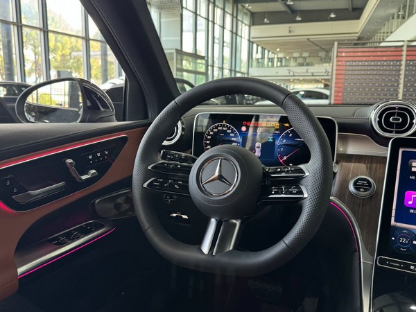 2026款GLC全系搭载2.0T+48V轻混系统,匹配9AT手自一体变速箱与全时四驱系统,这一组合既保证了动力输出的平顺性,又提升了燃油经济性。从技术细节看,300 L系列最大功率190kW,2000-3200rpm的扭矩平台使其在中高速区间加速更强劲,适合追求驾驶乐趣的用户;260 L系列则通过1600-4000rpm的宽扭矩区间设计,兼顾了城市通勤的平顺性与高速巡航的稳定性。底盘方面,全系标配可变转向比、多连杆独立悬挂与软硬调节功能,支持标准/舒适/经济/运动/个性化5种驾驶模式,其中越野模式专为轻度非铺装路面优化,配合全时四驱系统,提升了车辆的通过性。值得注意的是,这套动力总成经过奔驰工程师的精心调校,9AT变速箱换挡逻辑清晰,在日常驾驶中几乎感受不到顿挫,而48V轻混系统的加入则有效改善了启停时的平顺性,降低了低速行驶的油耗。