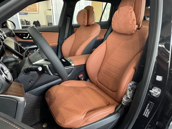 2026款GLC的空间设计充分考虑了中国用户需求,5座车型后备厢容积达550L,支持比例放倒,可扩展至更大空间;7座车型采用2+3+2布局,第三排座椅虽更适合儿童或短途乘坐,但为多人口家庭提供了灵活选择。舒适性配置方面,全系标配四区空调、64色氛围灯、仿皮座椅与前排电动调节,中高配车型(300 L系列、260 L豪华型)还增加了前排座椅加热、手机无线充电、方向盘与座椅记忆功能;300 L豪华型更配备HUD抬头显示与运动外观套件,进一步提升豪华感。此外,全系标配的多层隔音玻璃与车载空气净化器,有效隔绝了外界噪音并改善了车内空气质量,配合奔驰一贯的精致内饰做工,营造出静谧舒适的驾乘环境。